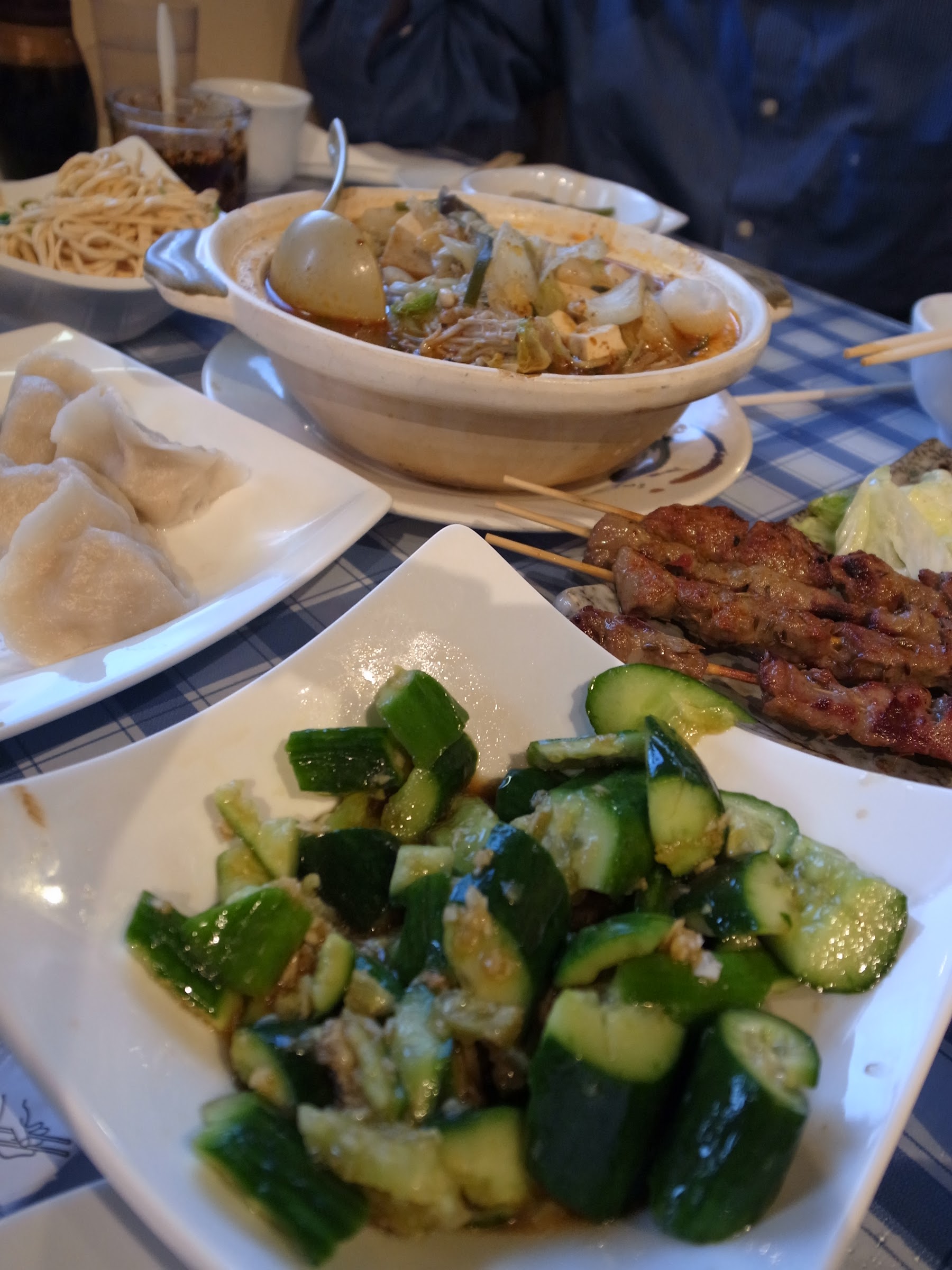 這家的位置已經在Outer Sunset蠻西邊的了,這一帶其實很少來。今天和他們碰頭,讓他們選餐廳,他選了這一家,就順便來吃吃這家他一天倒晚在當笑話講的餐廳。它們走的路線也就是一般常見的南北合,大江南北的菜都賣。串燒和水餃類的應該是他們的強項。他們的餐廳有一半的空間完全是拿來當作一大羣大嬸們包水餃的地方,這種現包的水餃也好吃些。不過它們的菜裡好像挺愛加孜然的,連桌上的辣椒醬都有孜然味。