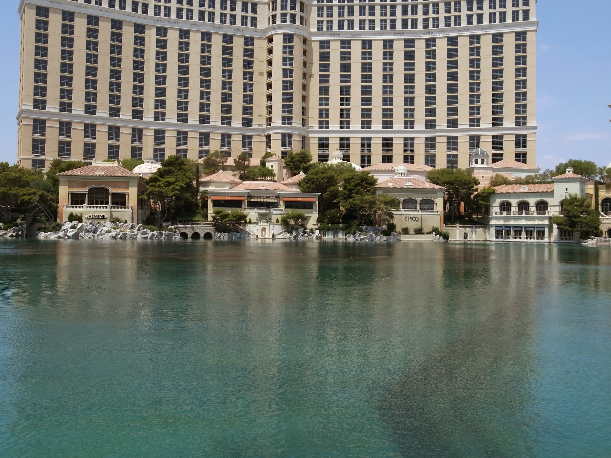 這家前面真的是硬在沙漠裡給你開個人工湖,定時還有很壯觀的噴泉水舞可以看。它們自己的餐廳佔盡地利,沿著湖畔的那一排都是它們的餐廳。