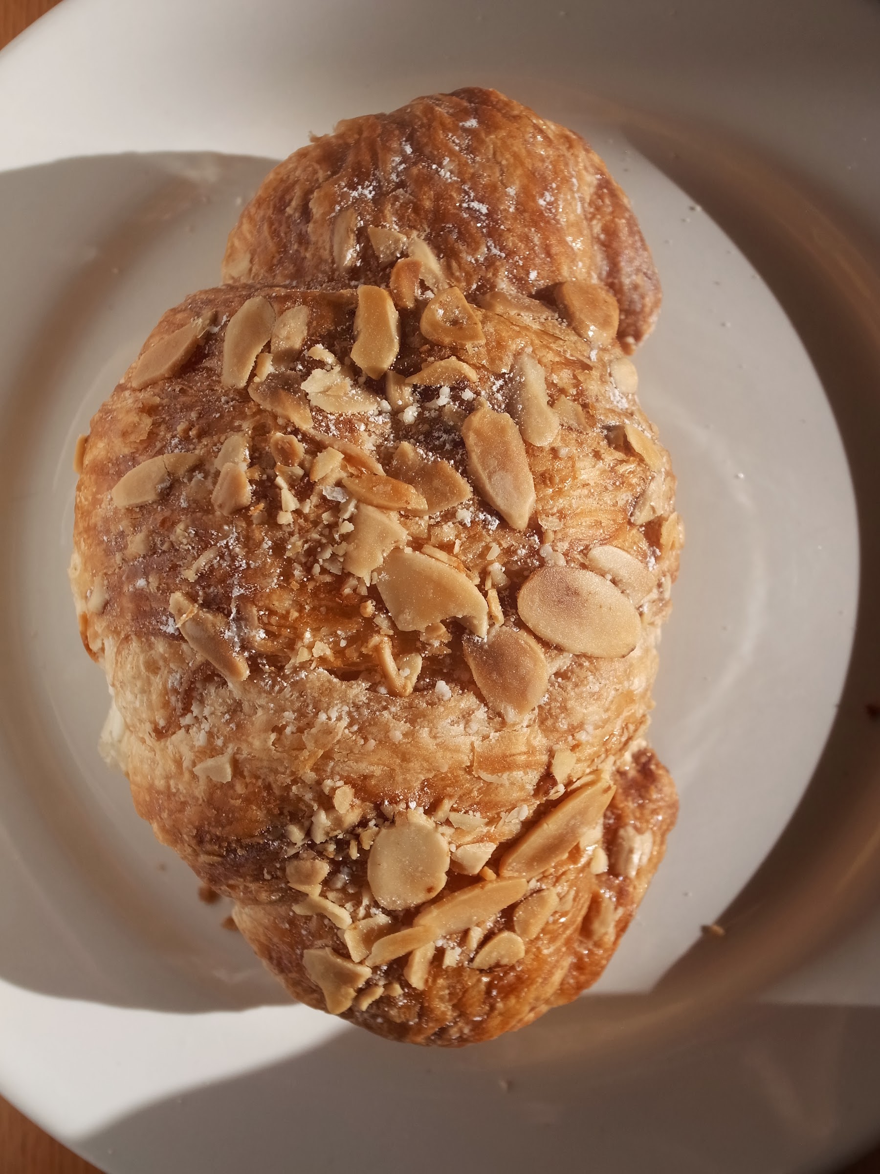 來看看今天吃的吧。杏仁可頌,它們的杏仁可頌個頭作得很大,不過比較像一般的可頌,裡頭的杏仁醬蠻少的。
