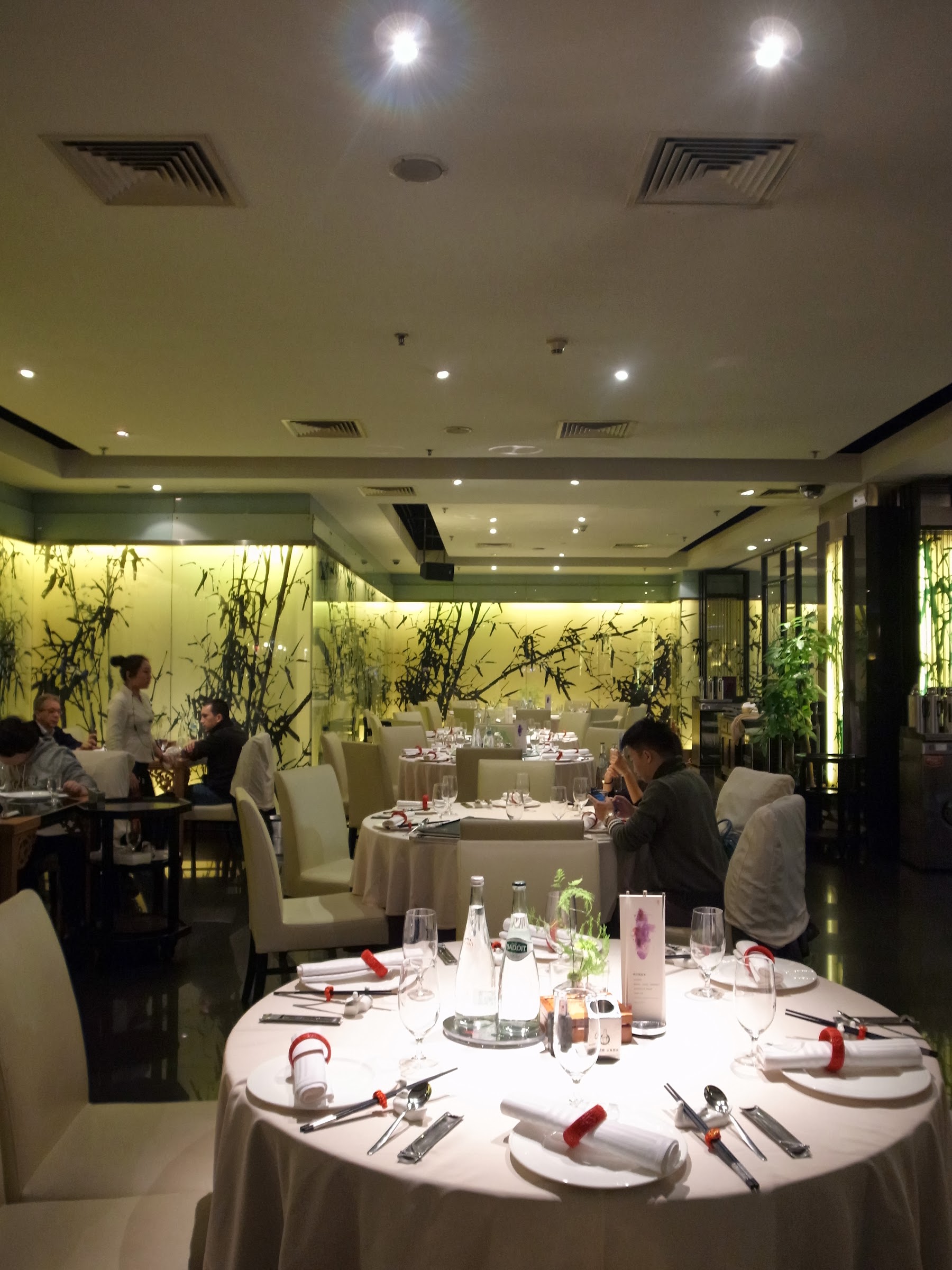 中國現在也難逃低頭族的魔掌。隔壁桌一家四口一整頓飯下來對話的時間少,各自低頭玩手機的時間多。最神奇的是那個我們一直搞不清楚是小男孩還是小女孩的小孩,自己面前一樣一杯紅酒,拿起來就灌,喝得滿臉通紅,看得我們瞠目結舌。中國大概還沒有不能供酒給未成年人的法令。