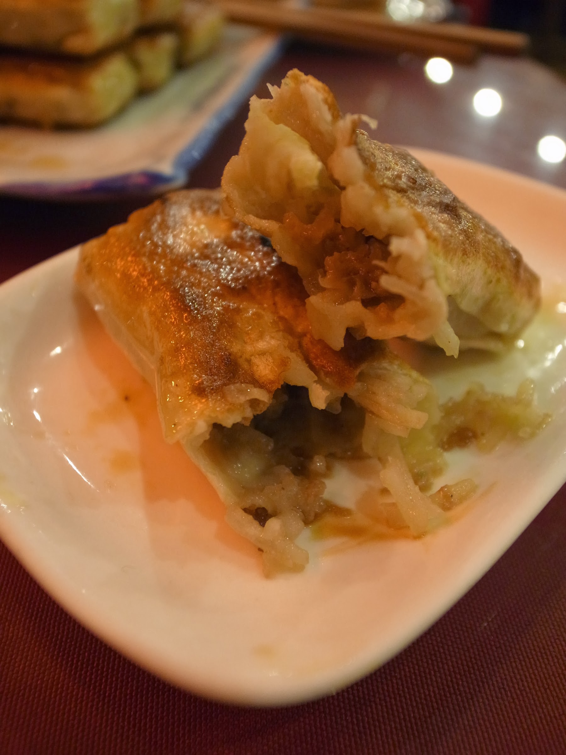 這是羊肉白蘿蔔。這些「長條鍋貼」大概都依著老式作法,油都下得蠻重手的。這個吃起來對我來說有點太油了,要不然也不難吃的。