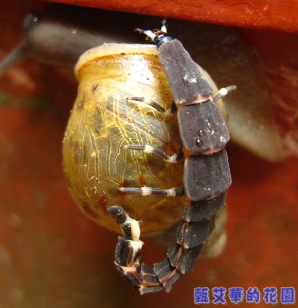 初春後院的螢火幼蟲,應該是餓瘋了,竟然夢想著以小博大.... 清晨在後院的花盆上看到一幕有趣的景像,一隻螢火幼蟲爬在非洲蝸牛的殼上奮力的想制服眼前的美食,雖然這隻蝸年還小但也比它大上十倍以上。只見兩...