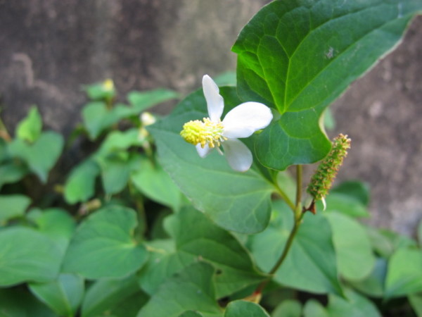 後院裡長了一群魚腥草,對它最初的記憶是小時侯有次阿公喉嚨痛很久,阿嬤隨手摘了一把魚腥草嫩葉和著鹽巴搓揉成糰讓阿公服用,那股腥味想忘都忘不了,我難掩對那氣味的厭惡,阿嬤卻說...憨孫啊....