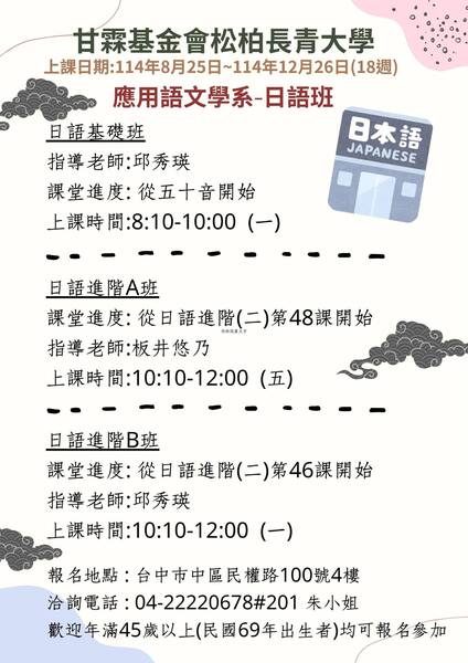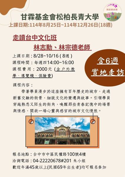 歡迎年滿45歲以上(民國69年以前出生者)報名參加,一起在學習中找回熱情與活力!