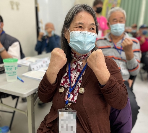 蘇大哥原本不想來,是王阿姨對他說:「不然我們兩個都在家,很無聊。」他才點頭答應。來了之後,也慢慢放鬆下來。王阿姨很快融入課程:「這裡有老師、有朋友可以聊天,真的很好。」結交新朋友,讓她特別開心。問到今天的感受,她開心地說:「很快樂!太好了!」