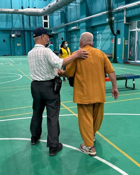 雖然因手術留下左耳重聽的後遺症,他仍專注地傾聽其他長輩的話,耐心點頭、溫柔回應。那一刻,他不再是需要照顧的受助者,而更像是一位守護大家的「老大哥」,用行動帶給周圍的人溫暖。