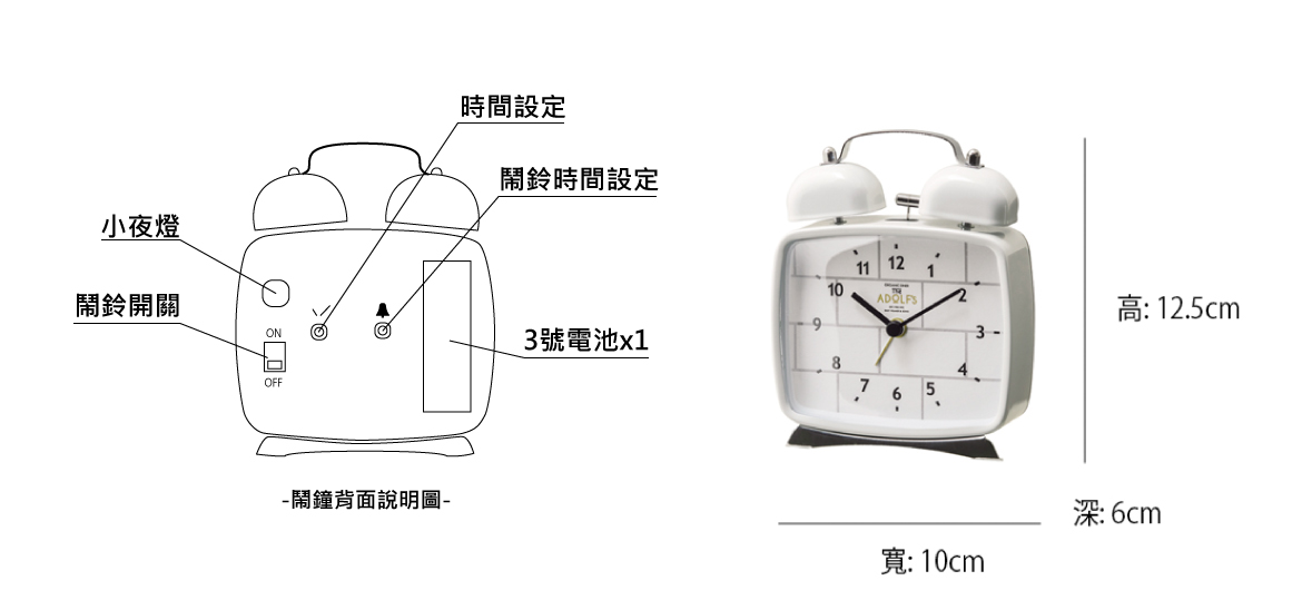鬧鐘的白 灰 黑簡約俐落色彩搭配