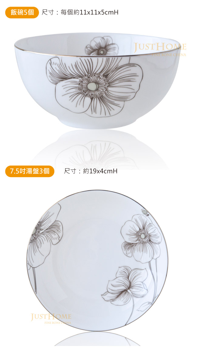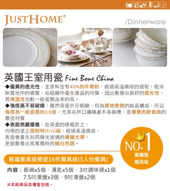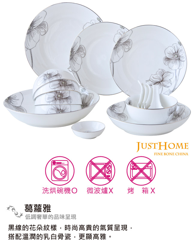 016170446 Just Home葛蘿雅高級骨瓷16件餐具組5人