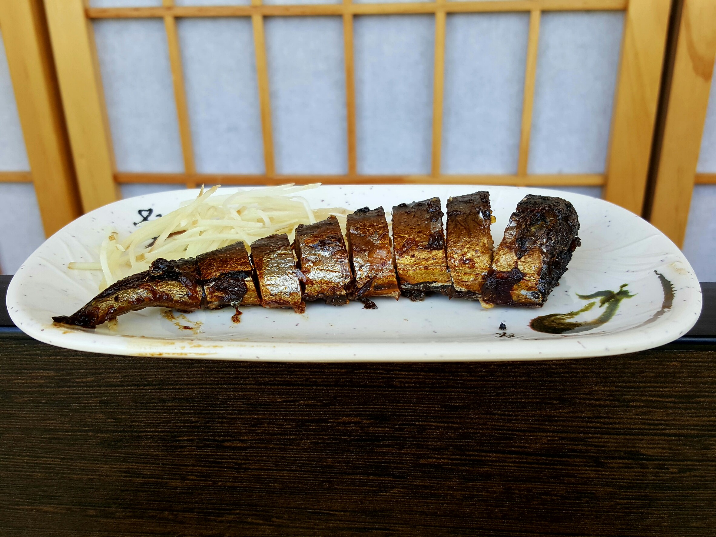 另外不能忘了店裡的特色小菜,化骨綿掌魚,一隻號稱被化骨綿掌打了一掌的秋刀魚,從來沒想過有一天吃秋刀魚的時候竟然可以連魚頭都直接吃掉,完全不用管骨頭及魚刺,就好像這隻秋刀魚種了化骨綿掌,完全沒有了骨頭一般