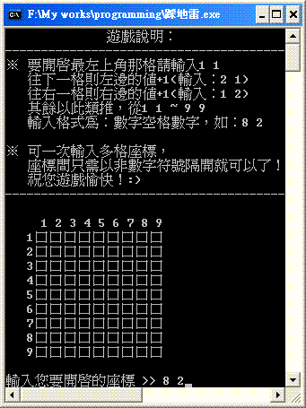 踩地雷.exe檔是遊戲檔囉!而踩地雷.c是原始碼。