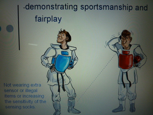 台灣說跆拳道比賽是黑道陰謀,根本是做賊喊捉賊。台灣的運動,如棒球,才是如此。且若跆拳運動是如此黑暗,那台灣為什麼要參加這項運動呢?以前國府一直說中韓是兄弟之邦,這在大陸時尚可,以前的韓國領袖都在中國庇成,退到台灣後仍襲舊邦,但其實已是自慰,跆拳運動就是「韓兄中弟」在台灣發展起來的。1966年蔣經國任「國防部長」時訪韓,看到韓軍中的跆拳戰技很震撼,回來就在海軍陸戰隊成立「莒拳班」,聘韓國教官盧孝永做總教頭,搞個「勿忘在莒」的中國特色的跆拳,這就是中華民國跆拳的鼻祖。如果那時就搞台獨,一定叫「台拳班」。後來的「中華民國跆拳道協會」會長,都是由陸戰隊司令擔任。跆拳奪標選手向旗還是敬軍人的舉手禮,而不是如奧會的敬右手貼胸禮,看來怪怪的。現在國軍虛散獨化,早無過去「剽悍殺敵」的士氣,跆拳已轉為頭碎磚手穿板的表演性質了。