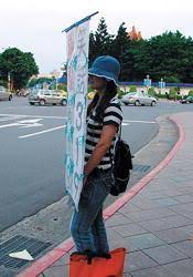 她想,站在街頭,不在街道中,就像週末舉著房地產廣告的人,沒什麼不可以吧?這是她的自由、人權。很多人也這麼想。