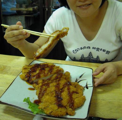 想多吃幾種不一樣的,可單點炸豬排,再加壽司、沙拉、生魚片等其他料理,不少精打細算的學生族,情侶檔點一份炸豬排飯才120元,兩人吃一份綽綽有餘;想豪華一點則可點咖哩豬排飯才140元,第一次點的人上菜時決定會嚇得說不出話,因為是用一個超大、如臉盆般大小的餐盤盛裝,也是超人氣情人餐,不少情侶面對面你一口、我一口,哇!真的是「大餐」。