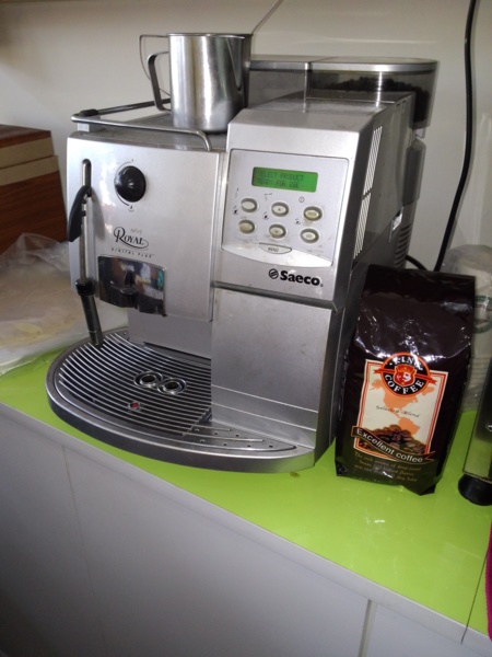 之前在大溪這一帶閒晃的時候發現有家早餐店有一台舊款的喜客全自動咖啡機,可是卻沒有拿出來用,我好奇之下就跟老闆娘哈拉了一會,才知道原來當初是老闆買來用的,但是後來似乎是故障了,而老闆娘也不會用所以就懶的維修了,結果一放就是好幾年。