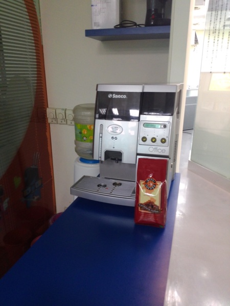 這次接到了來自台北的電話,對方表明希望能租用咖啡機,由於公司同仁都比較喜歡喝純的黑咖啡,因此我推薦使用Roayl Office,超大容量的純黑咖啡研磨機,不但快速製作,還可以一次儲存大量的咖啡豆及飲用水,讓福委的人員可以不用一天到晚都要補充物料,在對方同意後就約了時間到台北進行試喝。