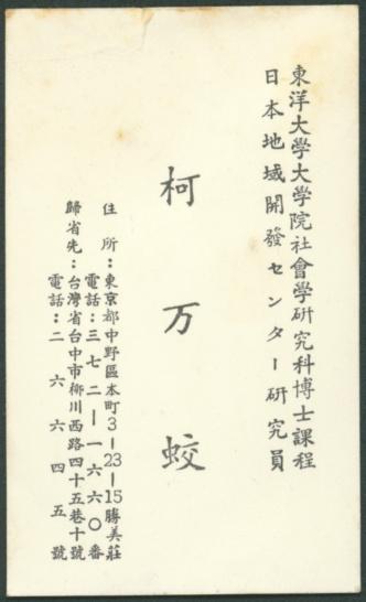 不知您有聽過柯老師談及他的經歷嗎:在金門823砲戰期間當過美、日語翻譯,之後在韓戰期間當美軍的翻譯,接著轉到紐約聯合國總部當翻譯幾年,後因健康因素返回臺灣方始投入杏壇。(henrychen2001@yahoo.com)