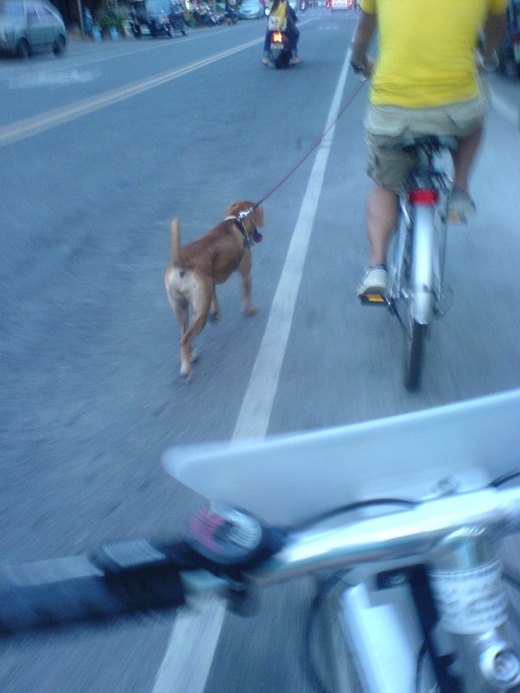 然後去買東西或是帶著家犬托托去散步,是被牠拖著走啦!