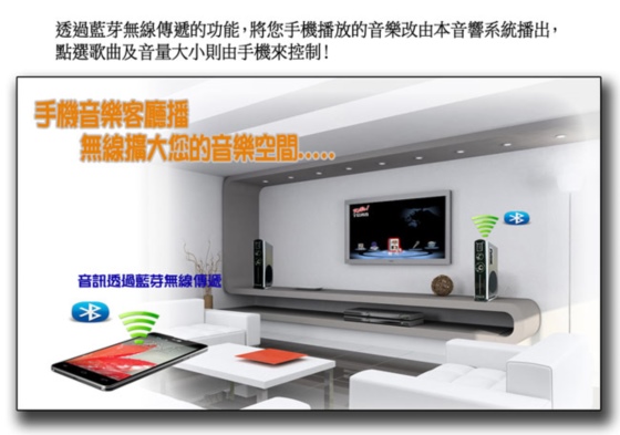 ●使用藍芽傳遞功能,自手機、平板操作音響系統播放