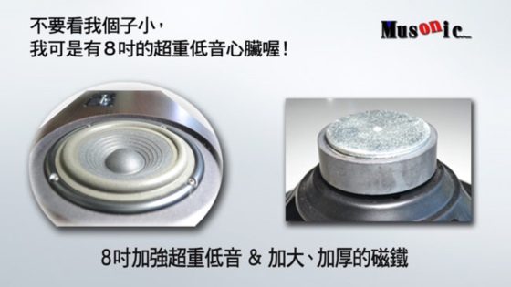 單支喇叭單體尺寸:1.5吋高音x1,3吋中音x1,8吋重低音x1