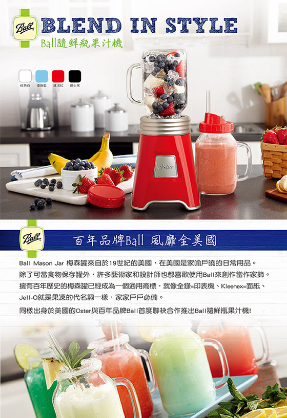 ●美國果汁機領導品牌,暢銷百年Ball Mason Jar,品質有保障