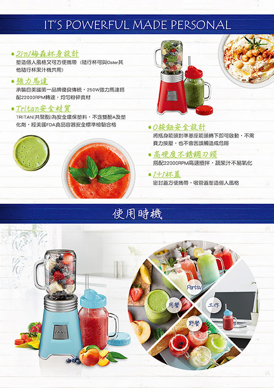 【母親節送禮】美國OSTER-Ball Mason Jar隨鮮瓶果汁機替杯