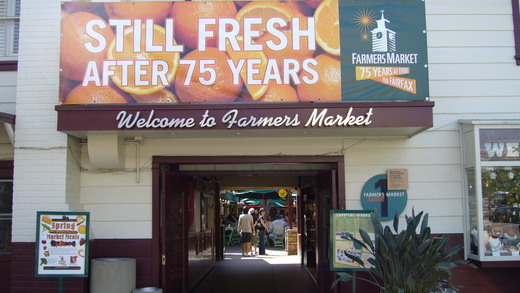 幾乎每年都會去LA 大部分都是在那兒做回台或回美的中途休息站 此次春假在外甥女介紹之下 我們挑了一天去洛城市區 市裡有個室外購物中心--The Grove 那裡除了有衣飾店 百貨公司之外 吸引我們的是Farmer's Maket 一來裡頭賣生鮮蔬果 豬羊牛肉 手工糕點 還有讓饕客兩眼發亮 口水直流的各式美食 有墨西哥 土耳其 韓國 日本 法國 義大利 美國南方等料理 原本中午要去韓國城啖烤肉的 在才跨進兩步Farmer's Market 兒子便當下改變原訂計劃 要在Market裡吃午餐 實在是美食當前 選擇又多 不在那吃簡直是太對不起 自己 我們四人在裡頭繞了兩圈才決定吃啥