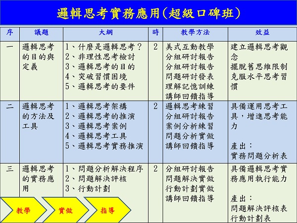 2、課程設計採理論與實務研討的方式,讓學員實務思考,學以致用,知行合一。