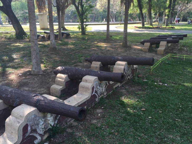 園內有忠烈祠、射日塔、福康安紀功碑、丙午震災紀念碑、十二門古砲、孔廟及阿里山森鐵蒸汽小火車頭等史蹟,東北隅樹木園及都會公園遍植熱帶植物,構築平地森林,讓你「森」呼吸!