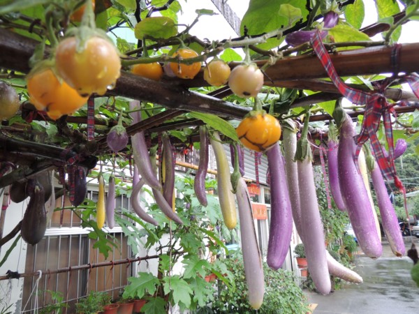 田媽媽餐廳自種的五彩茄子同長在一棵大茄樹上。