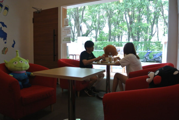 想要娃娃陪伴喝咖啡?這裡可以實現!椅子上坐滿毛怪、猴子、哈士奇、兔子、熊抱哥、熊本熊等明星玩偶,等你入座。超可愛的呀!
