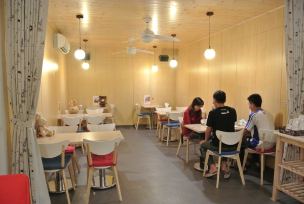 顧客座位分前、後區,前端可欣賞樟木森林、後端保有私人空間,店內皆有免費WIFI可使用,帳號、密碼貼在每個餐桌面上。