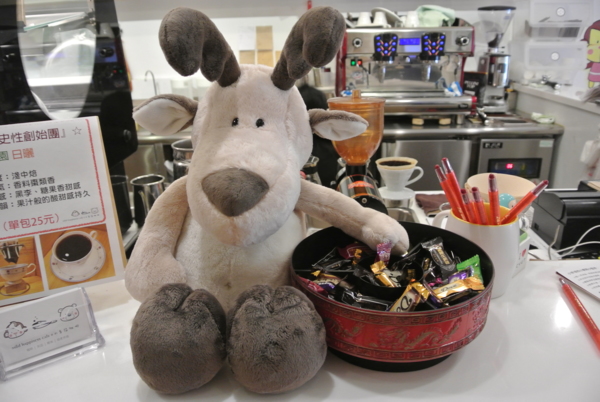 暖色調的空間,擺滿兩位女孩收集的玩偶戰利品,尖銳桌腳有泡棉包覆,廖禹瑄有四位小姪子,注重店內親子互動的安全性,希望提供舒適、放鬆的空間,讓顧客品咖啡、嚐點心。