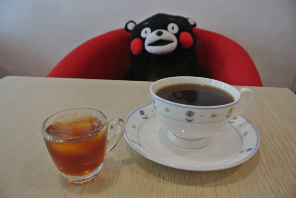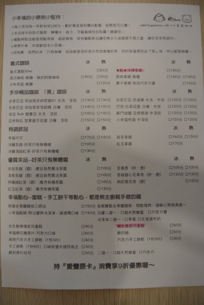 小幸福咖啡提供手沖精品咖啡一冷、一熱的喝法,讓顧客一次享有兩種不同層次風味。今天熊本熊陪我吃下午茶~