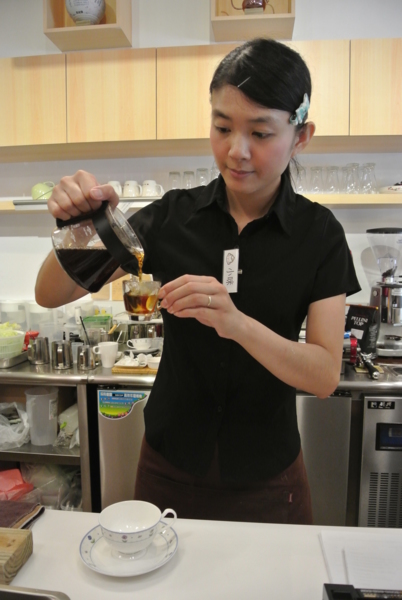 綽號小咪的廖禹瑄正在製作衣索匹亞耶加雪菲箔鉑雅咖啡,也就是我點的咖啡,富有莓果、草莓香、果乾等風味,是店內熱門飲品之一。