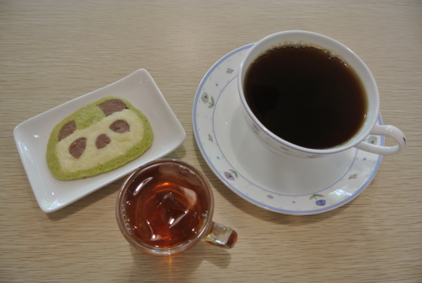 小幸福咖啡提供手沖精品咖啡一冷、一熱的喝法,讓顧客一次享有兩種不同層次風味。 熊貓手工餅乾利用抹茶粉、可可粉調色,沒有添加色素,真是健康又可愛!