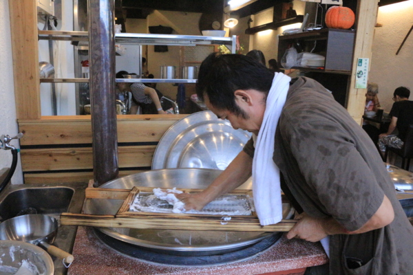 翁文耀堅持用傳統方式製作米食,米苔目以純米製作,柴火爐灶煮製。記者翁浩然/翻攝