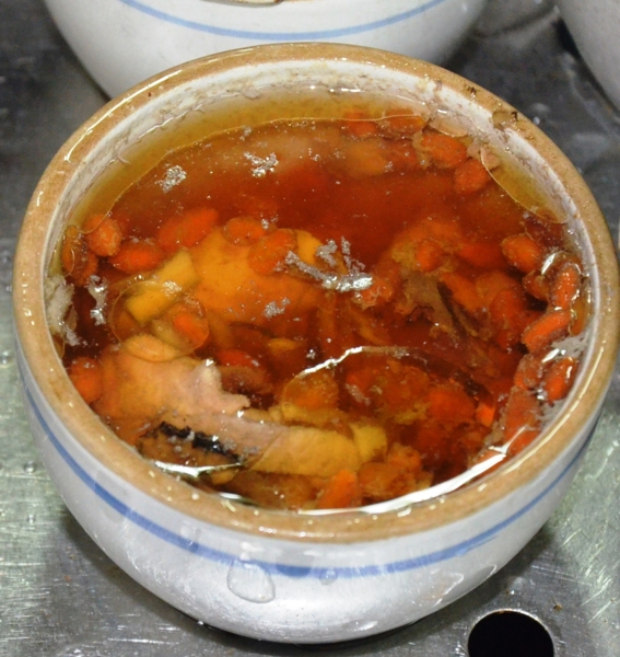 基隆市仁一路的「藥膳店」是已經開了20多年的老店,老闆林進興每天傍晚營業到凌晨,賣著10多種純漢方燉製的小盅藥膳,清燉飄香,適合夜歸人來上一盅,補身又暖胃。 藥膳店面不大,騎樓有3、4張桌子,招牌寫著「藥膳」兩字,沒有特別取店名,卻是很多識途老馬愛吃的老店,每天傍晚開店,遠遠就可聞到熱騰騰的藥膳香味,種類很多可以選擇。 當歸、麻油、黑棗、枸杞等燉雞等吃起來都很道地,價格75元到110元,很多都是吃了十多年的老顧客。林進興說,藥膳全都現蒸,是一種溫補,喝起來不會燥熱,常吃提高免疫力對身體很好,「卡健康啦」。 藥膳都是林進興以純漢方中藥的古法調配燉製,中藥材很貴,但他從不偷工減料,堅持足夠藥材入味,但也不能放太多,否則會變苦。 各種藥膳口味不同,當歸燉雞吃得到當歸的清香;四物燉雞湯頭烏黑,湯頭較濃,但肉質很甜嫩,有紅棗甘甜味;藥燉排骨肉質很嫩,湯頭多加了10多種中藥,甘甜不苦澀;人參燉雞雞肉多,湯頭很清甜。 龍骨髓湯很特別,吃得到枸杞、當歸的清香,每盅都用了3隻豬的脊椎骨髓,入口滑嫩如豆腐,想吃要趁早,去太晚就吃不到了。 店內的人氣商品是,人參燉雞、四物燉雞、龍骨髓湯;藥膳店就老闆一個人顧店,不外送,如果提早賣完就會先打烊。 怎麼去 店址:基隆市仁一路185號 預約電話:0926074296 營業時間:下午5:00~凌晨02:00 |