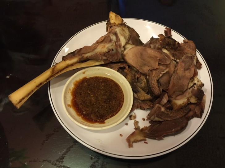 此外還有饢包肉,就是1張餅配特製紅燒羊肉;手撕椒麻雞則是煮熟的雞腿肉絲加洋蔥絲與辣油調味,讓軟嫩雞肉入口即能明顯感受到花椒的香麻氣味;臘八蒜羊柳用發酵過的蒜去熱炒羊柳,另外還有手抓飯、羊肉水餃、烤羊腿等特色菜。
