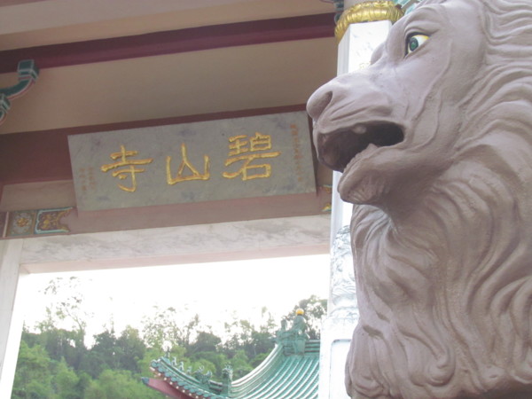 沿著貓羅溪畔的南投市彰南路,拾級而上,來到碧山巖,迎面而來是一片幽靜的青青草地,常有信眾帶小孩前來,一家大小在廟前樹下休息,聽蟲鳴鳥叫,孩童則在草上奔跑嬉戲,可愛的小沙彌石雕,或是二尊大象的塑像,都深受孩童喜愛。