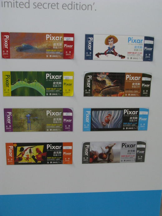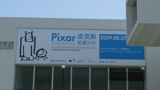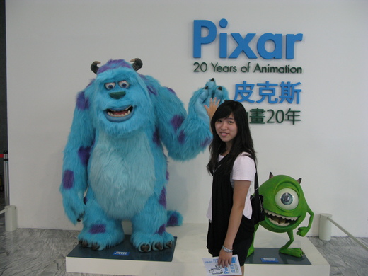 ↓北美館裡怪獸電力公司的毛怪和那一隻獨眼忘了名字的怪獸==(model是舍妹),另一張是北美館在賣的皮克斯展覽入場券(每天賣的都不一樣喔!),真想收集全套阿~不過只有買全票才有,學生優待票都是一樣的圖示!