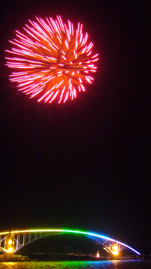 其實今天應該是個心情不錯的一天,雖然澎湖的風還是霸道地吹著,但至少沒有昨天(23日)陰雨綿綿的壞天氣,這個禮拜好不容易掙得兩天的假期,又剛好碰上澎湖花火節開幕,雖然還是孤零零的一個去看煙火,不過總算可以在日常繁重的生活壓力脫離出來,不用再去思考一些有的沒的瑣碎事務,今朝有酒今朝醉,別白的埋沒了這好不容易的閑適,晚上還是有點冷,不過都已經度過澎湖的冬天了,這點微風又算得什麼!為期一個多月的澎湖花火節,聽說是開幕和閉幕時最為熱鬧,而今天也邀請到蘇打綠和一個忘了叫啥的歌手(真對不住支持他的歌迷=0=)來為花火節站台,總算,入夏的澎湖開始有熱鬧的氣圍了,街上的遊客也開始變多了,終於可以告別寒冷又鬱悶的冬天啦!在澎湖還有一段時日要待,能放鬆就盡量放鬆吧!畢竟機會不可多得,更應該要好好珍惜!加油囉!