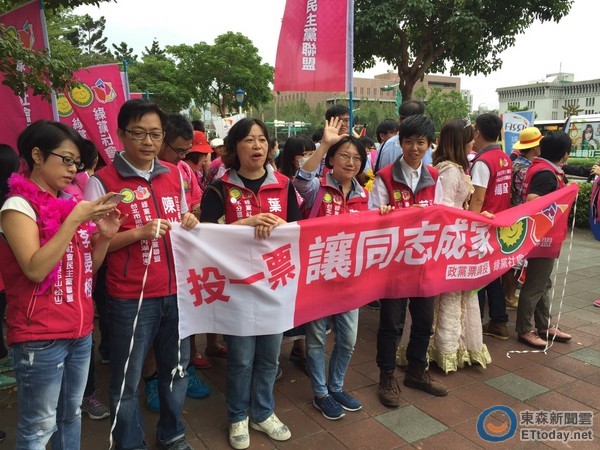 下午綠社盟13位區域與不分區立委參選人都準時到場參加遊行,包括范雲、苗博雅、陳尚智、李宴榕、葉大華等人,並一同高喊「投一票,讓同志成家」的口號,以表示對同志議題的高度關心,此外更承諾,未來進入國會之後,會組成「跨黨派婚姻平權推動聯盟」以實踐婚姻平權。