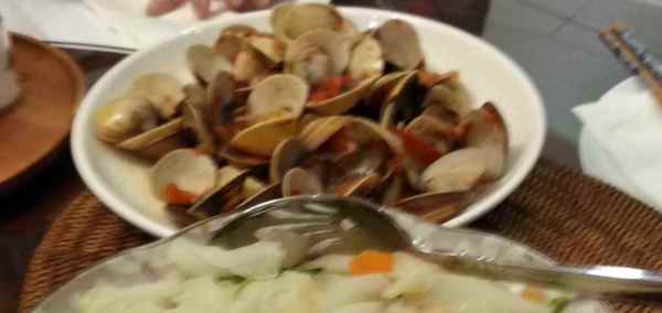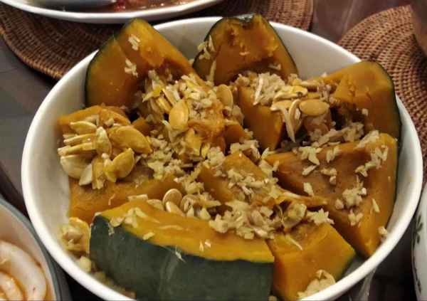 只好借花獻佛,拿出剛從大陸買回的綠皮花椒(香料)及新疆大棗夾核桃,當作飯後甜點。