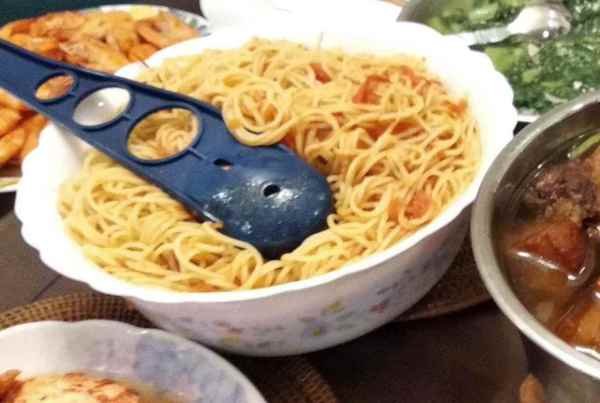 這次,王老師製作義大利麵招待大家、團員們則自動攜帶自己的拿手好菜,共襄盛舉。