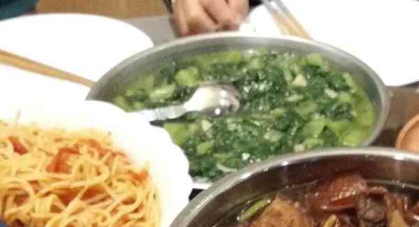 牛皮菜勾芡 還引起多人的後續活動-去大樓後面的雜貨店買一把來炒炒看