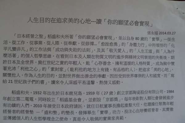 103 03 27 會長的讀書報告-閱讀稻盛荷夫