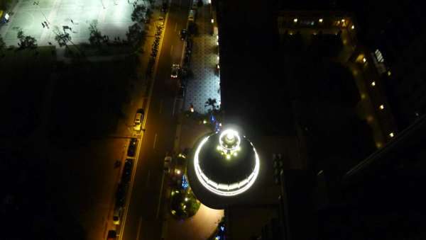 夜間,社區的燈雕亮了
