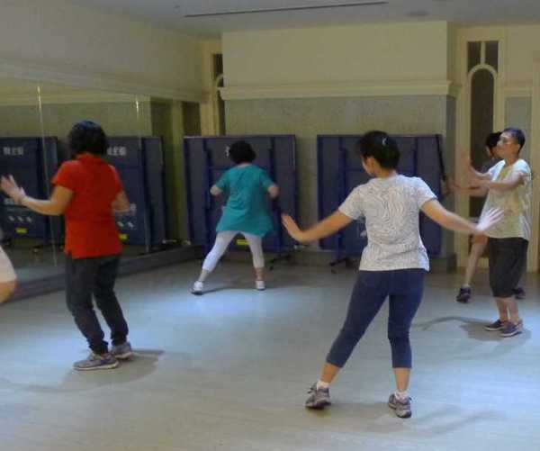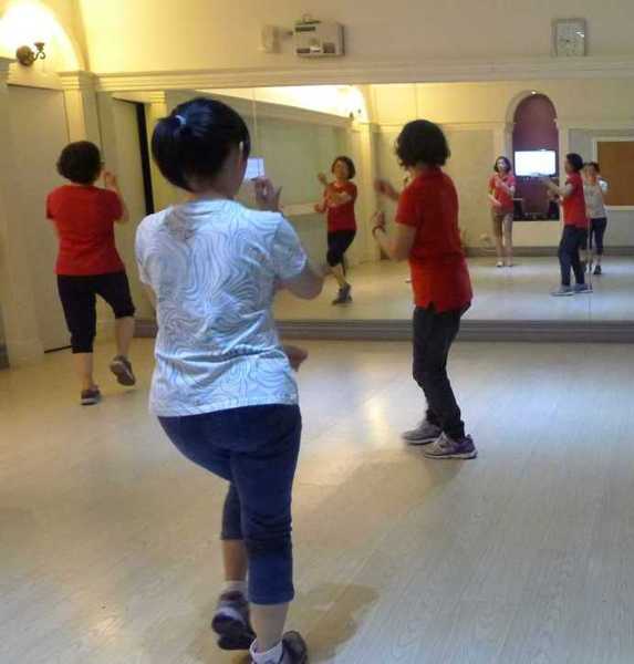 在班長帶領下,大家跳得有板有眼。