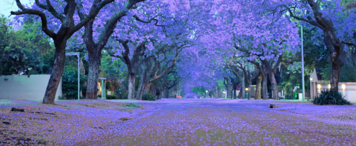南非行政首都比勒陀利亞有「Jacaranda City;Jakarandastad 藍花楹之城」的美譽,因為每當春天來臨,藍花楹開花使整個城市都變成藍色。