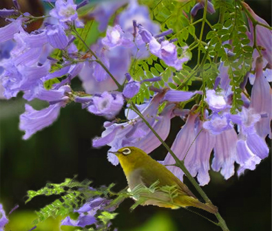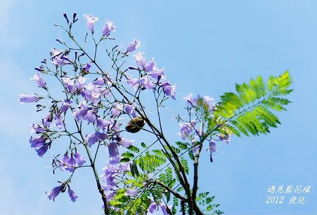 藍花楹,雖然早於 1922 年便引進台灣栽植,但因散於各地,顯得芳蹤難尋。